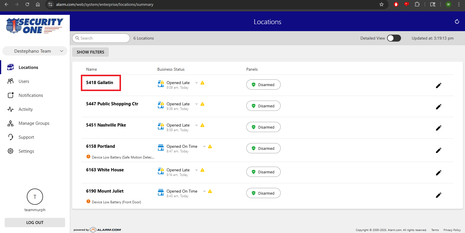 - DMs: Use Alarm.com (web or mobile) to remotely disarm only when safe and the alarm is not life-safety related. Always confirm site before disarming.