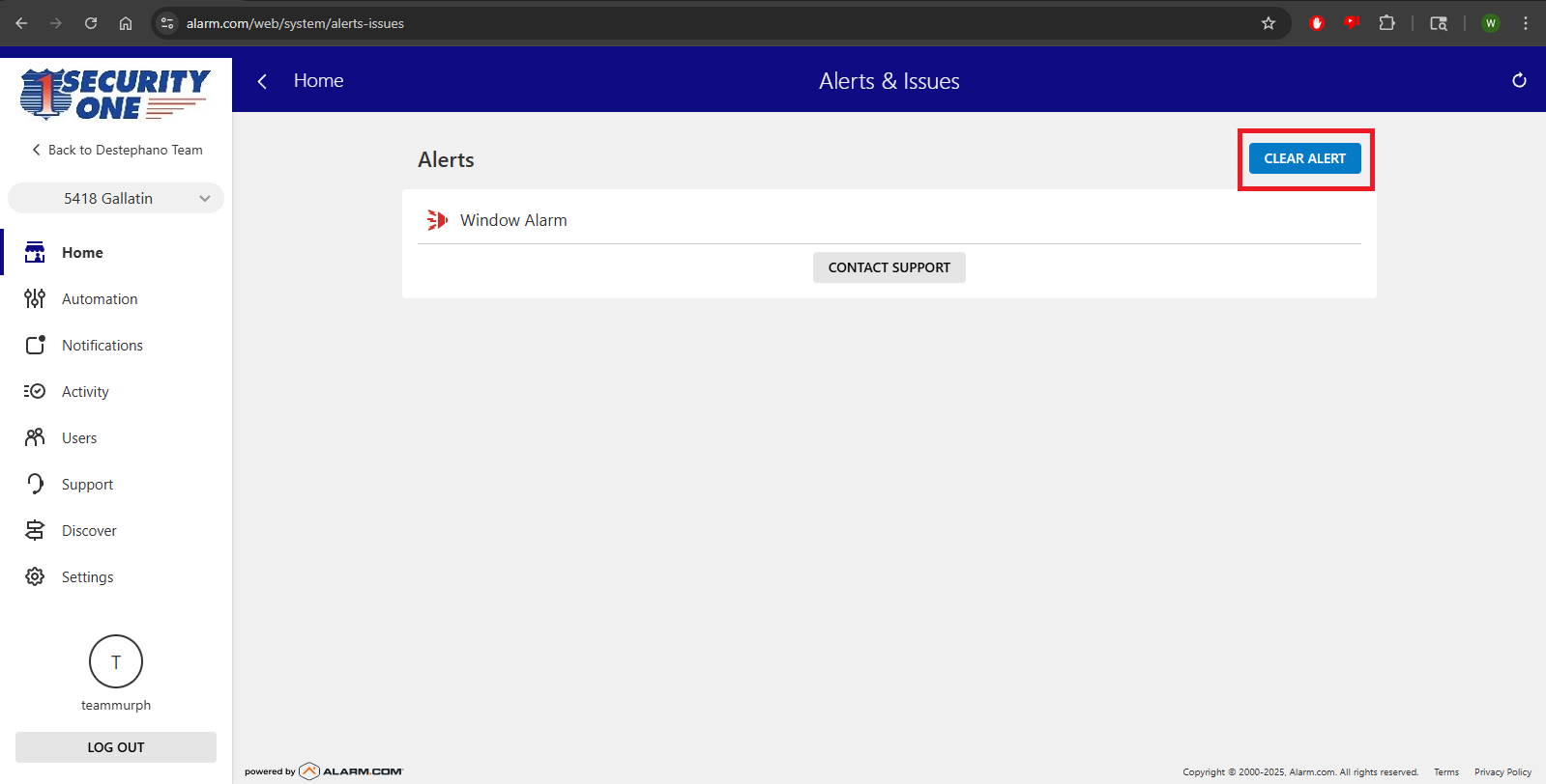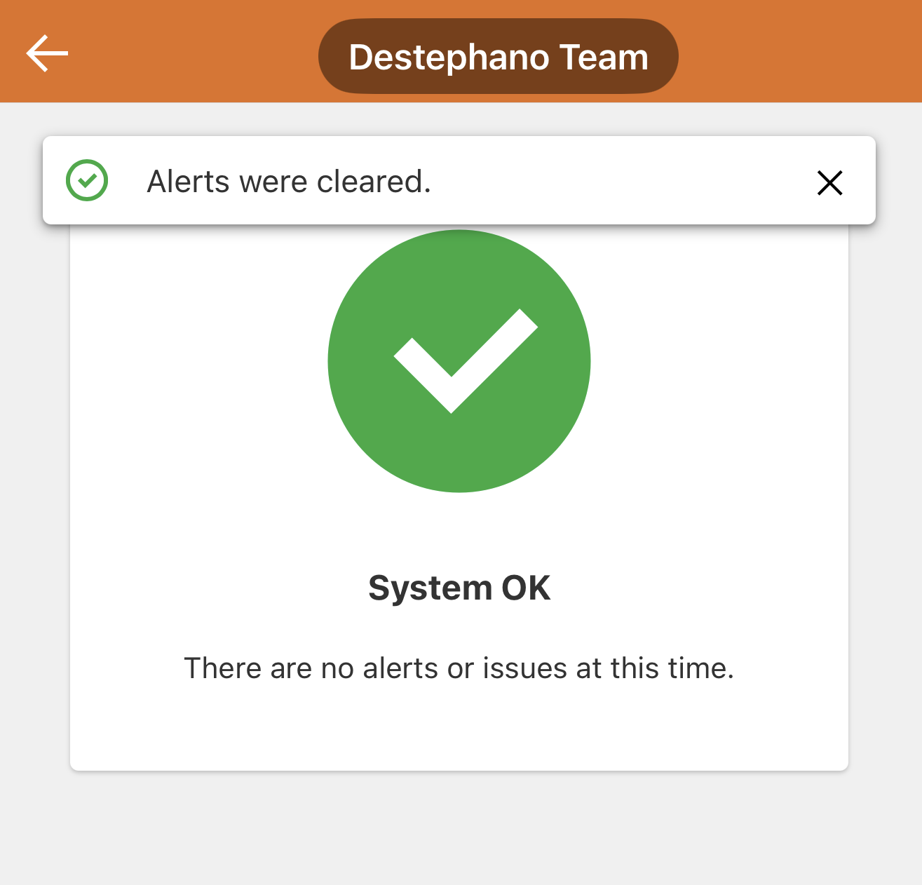 5) From the dashboard or alarm details, click Clear Alert (confirm when prompted).