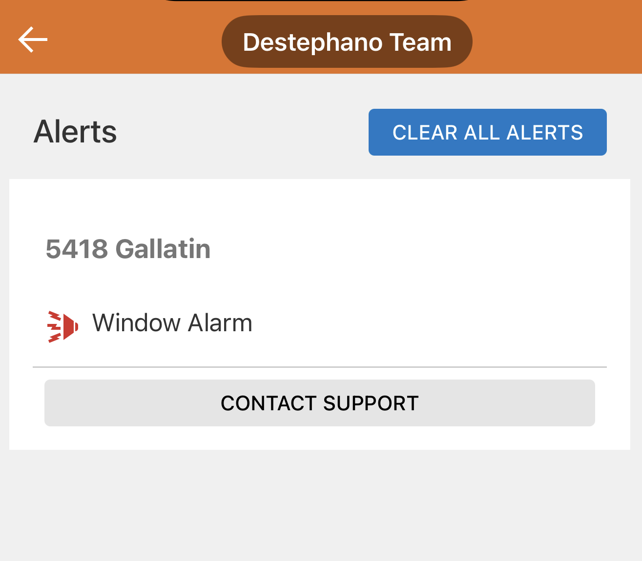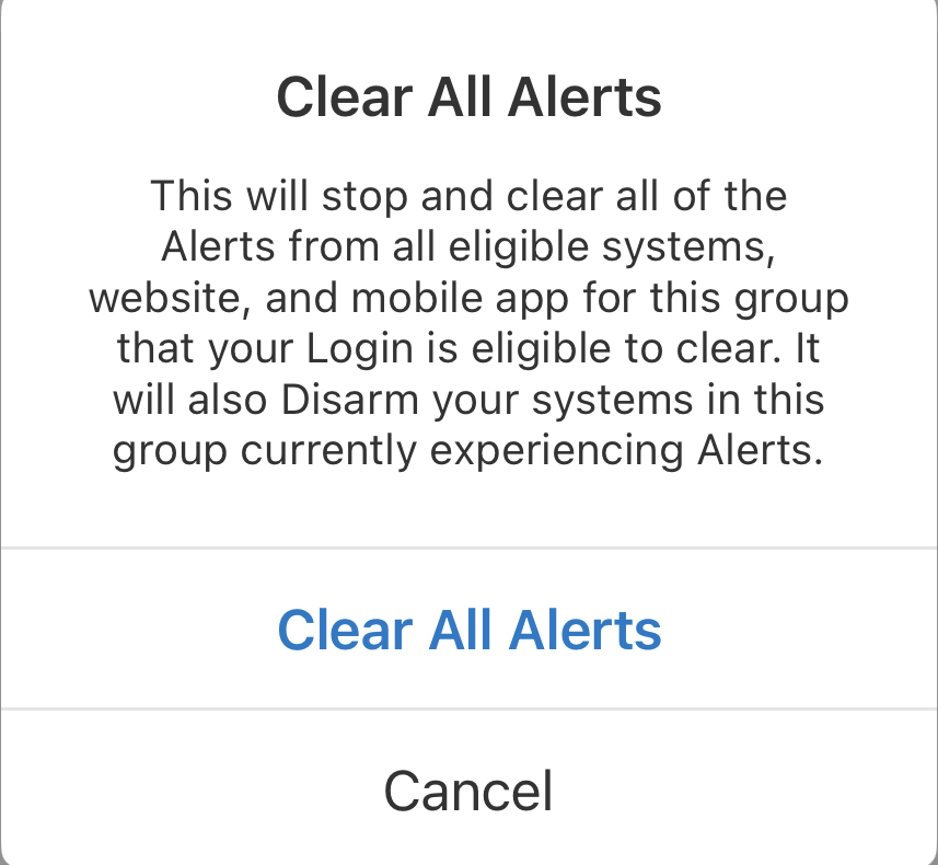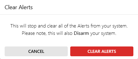 3) Tap Clear All Alerts. Then again on the pop up message. Wait for Disarmed confirmation.