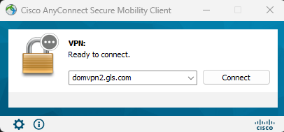 Open Cisco AnyConnect Secure Mobility Client and login using your GLS credentials.