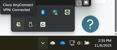 Verify your VPN connection is active (AnyConnect shows “Connected”).