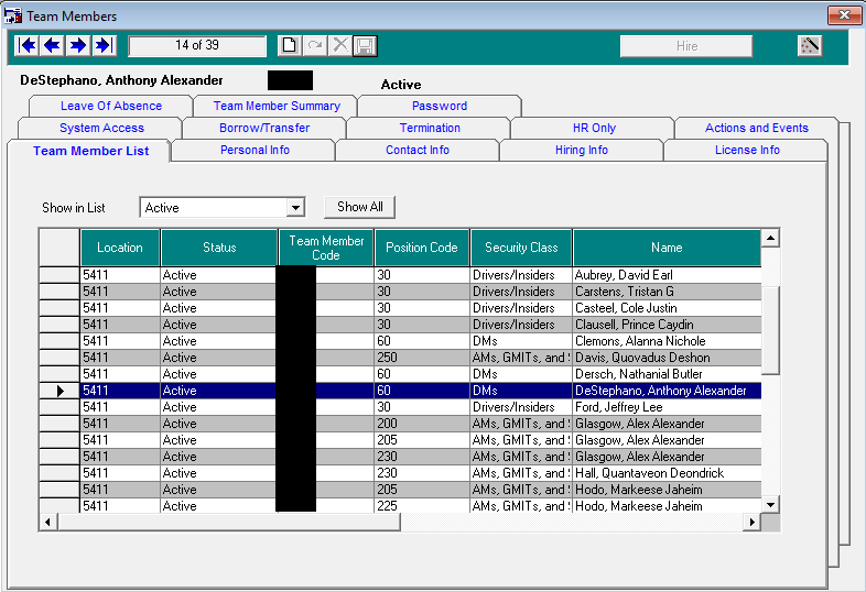 Locate the Team Member you need to change.