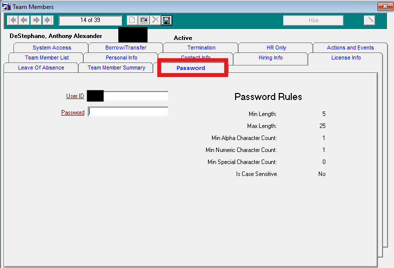 Access the Password tab for that Team Member.