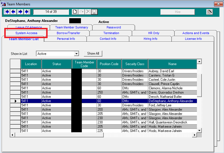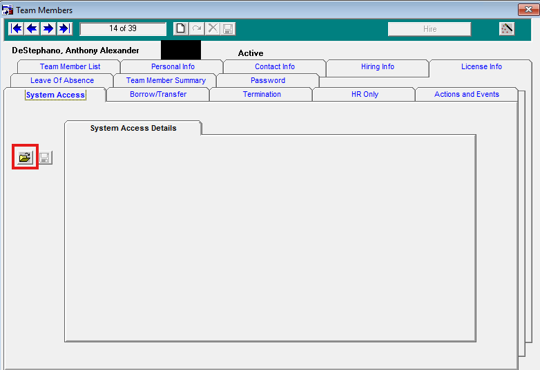 4) Highlight the Team Member in the list, then select the System Access tab.